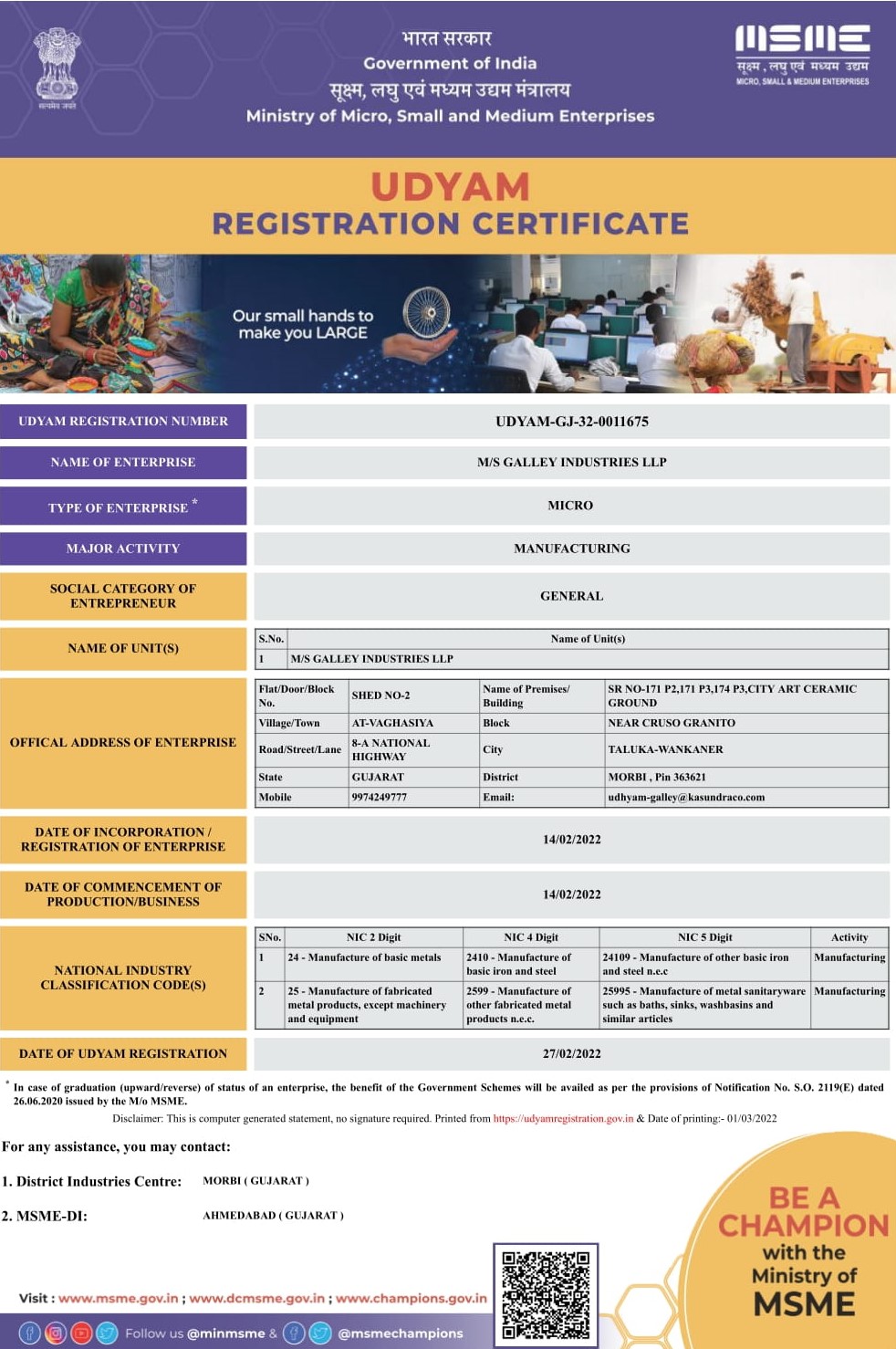 Udyam Registration Certificate